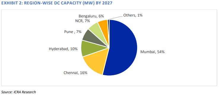When it comes to major markets, ICRA found that Mumbai is the front runner due to its central location, reliable power and cable landing stations. It contributes more than 50 percent to the current capacity and is expected to remain the key location for the upcoming data center capacity in India. Chennai comes in second, as it enjoys a dense wet cable ecosystem, which offers best latencies.