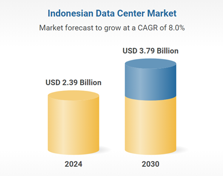 The Indonesian data center market is poised to grow at a compound annual growth rate (CAGR) of 8% to reach US$ 3.79 billion in 2030 from US$ 2.39 billion in 2024, according to ResearchAndMarkets.com’s latest report. The market is driven by hyperscaler demand and growing adoption of the internet, artificial intelligence and cloud services. Being the fourth most populous country in the world – 280 million people – with a fast expanding middle class, demand for data storage and solutions is on an upward trajectory.