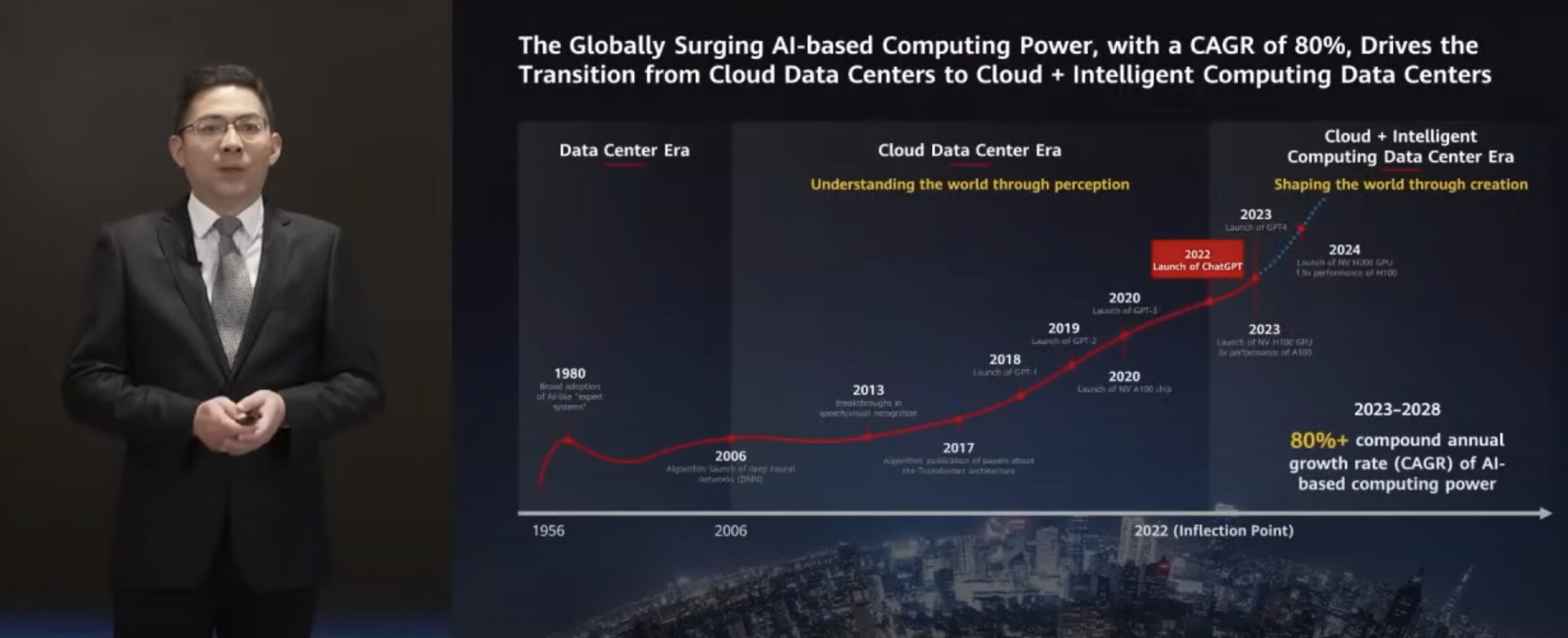 It expects the compound annual growth rate (CAGR) of global AI computing power to exceed 80 percent in the next five years, necessitating a transition from cloud data centers to cloud and intelligent computing data centers.