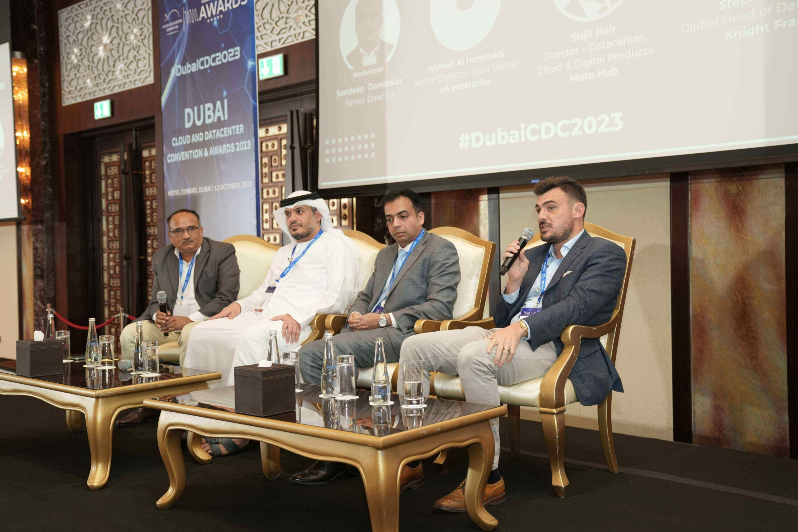 A power-packed panel discussion saw industry veterans like Sandeep Dandekar (Senior Director with a leading global data center) and stalwarts like Ahmed Al Hammadi (Senior Director, Data Center, e& enterprise), Sujit Nair (Director – Datacenter, Cloud & Digital Products, Moro Hub), and Stephen Beard (Global Head, Data Centers, Knight Frank) come together to discuss what kind of infrastructure needs to be deployed to deliver the digital transformation of the Middle East.